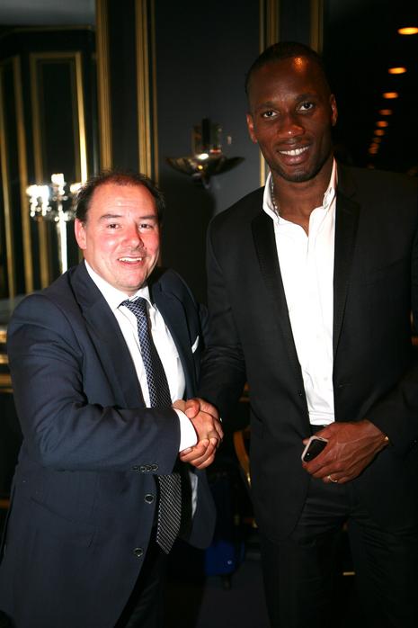 SAFP Präsident Dr. Lucien Valloni gratuliert Didier Drogba für seine Rede zur Rolle der FIFPro.