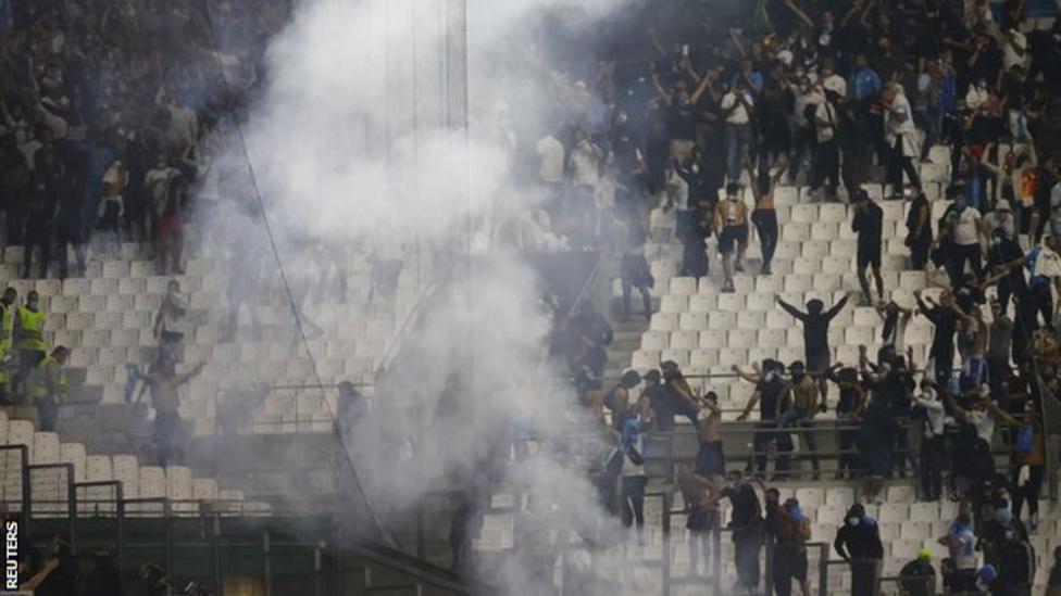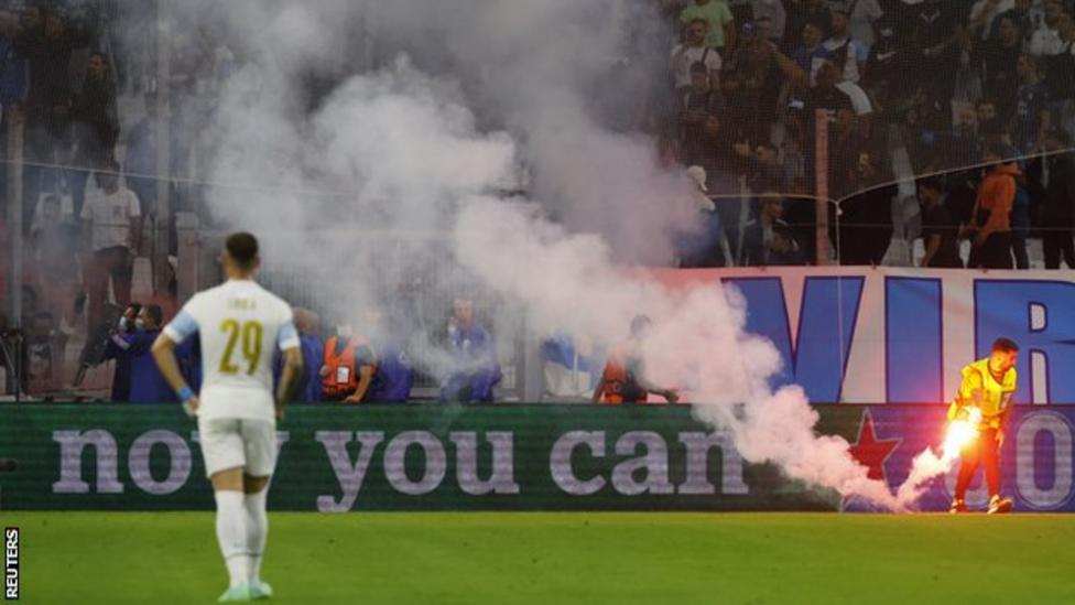 Marseille’s opening 3-2 win at Montpellier in August was also held up when fans pelted the pitch with bottles.