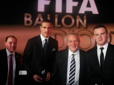 SAFP Präsident Lucien W. Valloni, Nemanja Vidic (Serbia, Manchester United), PFA Präsident Gordon Taylor, Wayne Rooney (England, Manchester United)