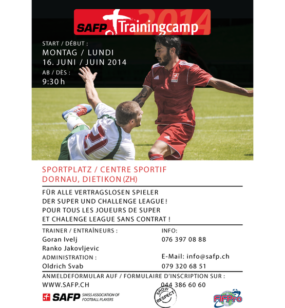 SAFP startet das Trainingcamp dieses Jahr am 16. Juni 2014, 09:30 Uhr auf dem Sportplatz Dornau, Dietikon (ZH).