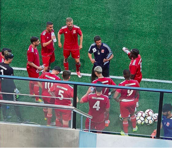 Unter der Anleitung von João Paiva (dunkles Dress) trainieren die Fussballer in Dietikon. (Bild: Safp)